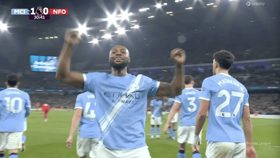 这是他为曼城出战的第8场英超比赛,而他已经为曼城打进了5粒英超进球。